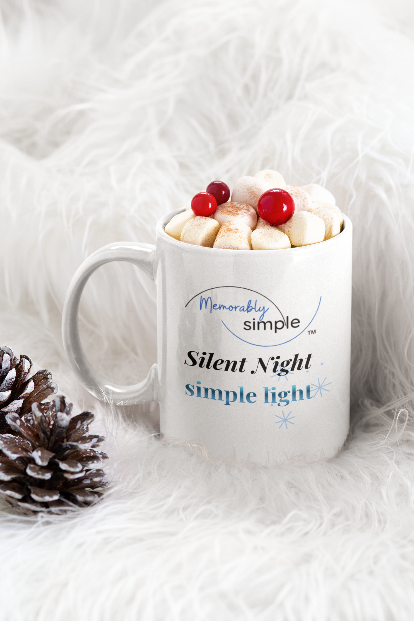 The Silent Night, simple light mug is designed for the quiet mornings, the reflective nights, and the in-between moments where life feels still. The soft blue tones and gentle snowflakes create a peaceful winter mood — a reminder that even on the coldest days, light has a way of finding you.